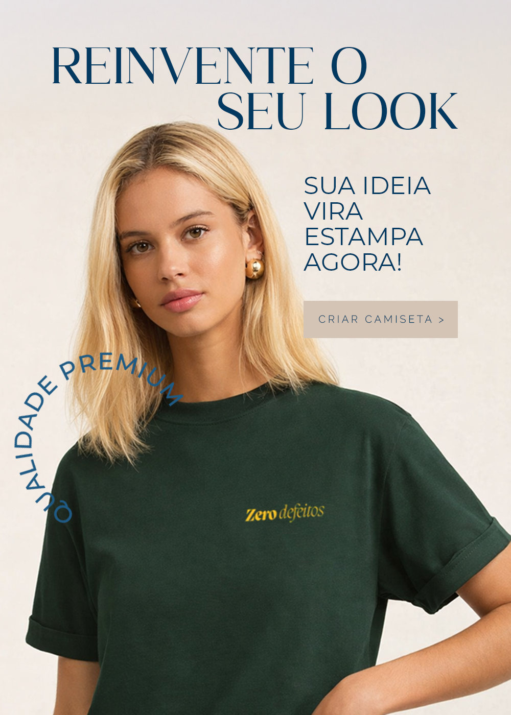 Crie uma camiseta única em poucos passos. Escolha o modelo, personalize com sua ideia e receba uma peça confortável, com ótima durabilidade e acabamento impecável, feita para vestir a sua identidade.