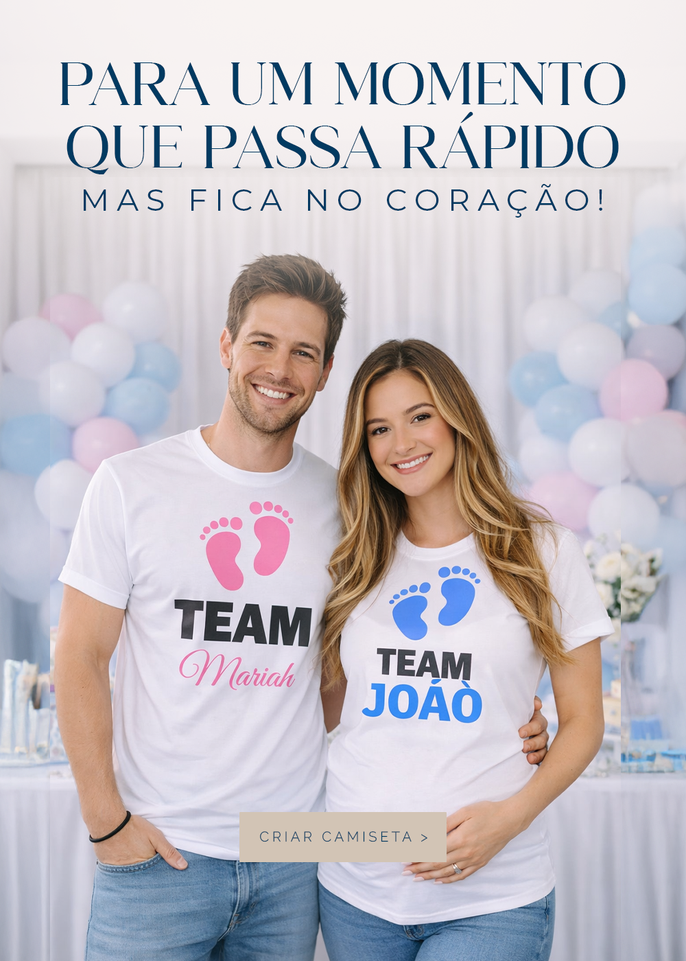 Crie uma camiseta única em poucos passos. Escolha o modelo, personalize com sua ideia e receba uma peça confortável, com ótima durabilidade e acabamento impecável, feita para vestir a sua identidade.