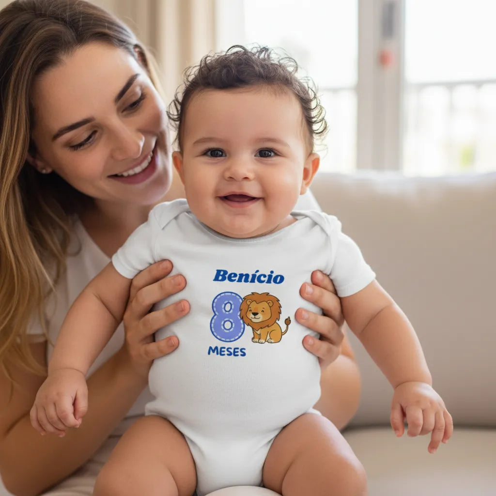 Essa camiseta foi criada para marcar cada mêsversário, registrando o crescimento do seu bebê e transformando cada fase em uma memória inesquecível.